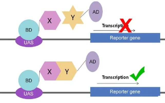 酵母雙雜交系統(tǒng),又稱蛋白阱捕獲系統(tǒng),是由Fields和 Song等人根據(jù)真核轉(zhuǎn)錄調(diào)控的特點(diǎn)創(chuàng)建的。利用酵母雙雜交系統(tǒng)能夠快速、直接分析已知蛋白之間的相互作用,并能尋找、分離與已知蛋白相互作用的配體,在研究抗原和抗體相互作用、發(fā)現(xiàn)新的蛋白質(zhì)和發(fā)現(xiàn)蛋白質(zhì)的新功能、篩選藥物作用位點(diǎn)及藥物對(duì)蛋白互作影響、建立基因組蛋白連鎖圖等方面應(yīng)用廣泛。