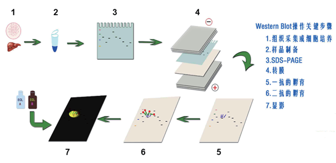 免疫印跡(Immunoblotting)又稱蛋白質(zhì)印跡(Western Blot,WB),是一種綜合性的免疫學(xué)檢測(cè)技術(shù)。它利用SDS-PAGE技術(shù)將生物樣品中的蛋白質(zhì)分子按分子量的大小在凝膠上分離開,然后用電轉(zhuǎn)移的方法將蛋白轉(zhuǎn)移到固相膜上,以固相膜上的蛋白質(zhì)作為抗原,與對(duì)應(yīng)的抗體起免疫反應(yīng),再與酶標(biāo)記的第二抗體起反應(yīng),經(jīng)過底物顯色或熒光成像等方法以檢測(cè)電泳分離的特異性目的基因表達(dá)的蛋白質(zhì)。WB技術(shù)現(xiàn)已廣泛應(yīng)用于蛋白水平的表達(dá)研究、抗體活性檢測(cè)和疾病早期診斷等多個(gè)研究領(lǐng)域。
